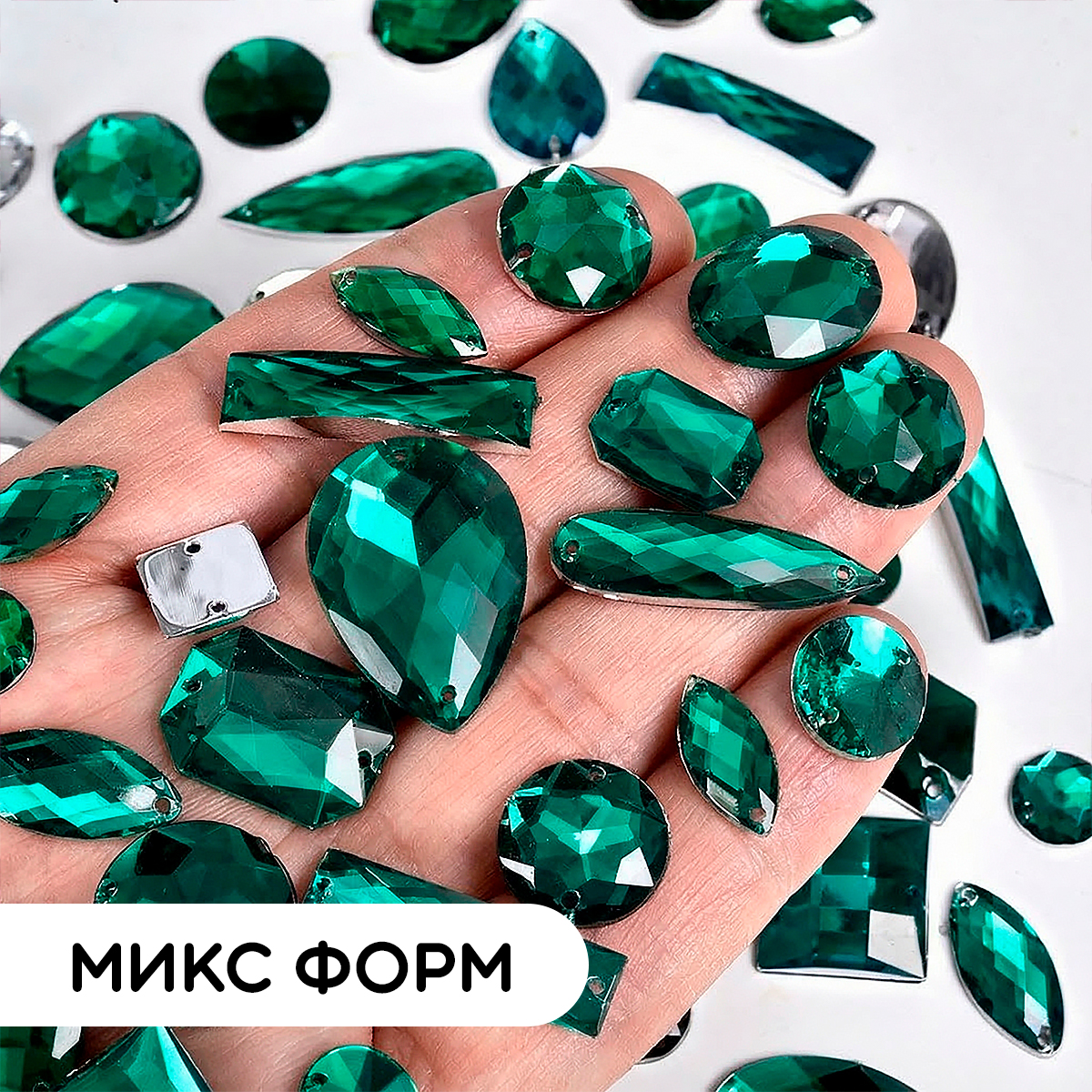 Набор пришивных стеклянных страз “Emerald” (микс форм)
