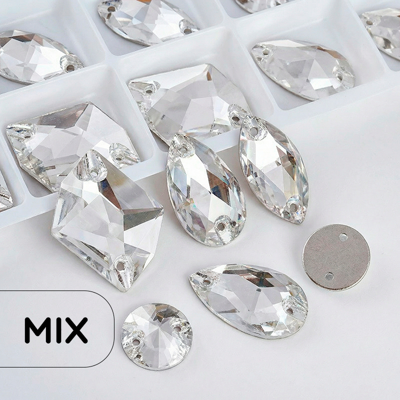 Набор пришивных стеклянных страз (микс форм) — Crystal