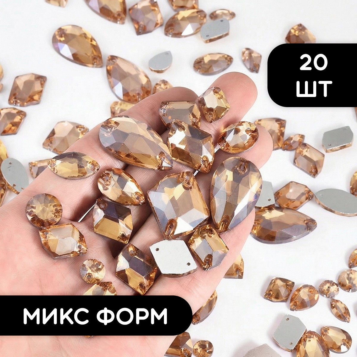 Набор пришивных стеклянных страз, микс форм, цвет Gold Champagne, 20 шт