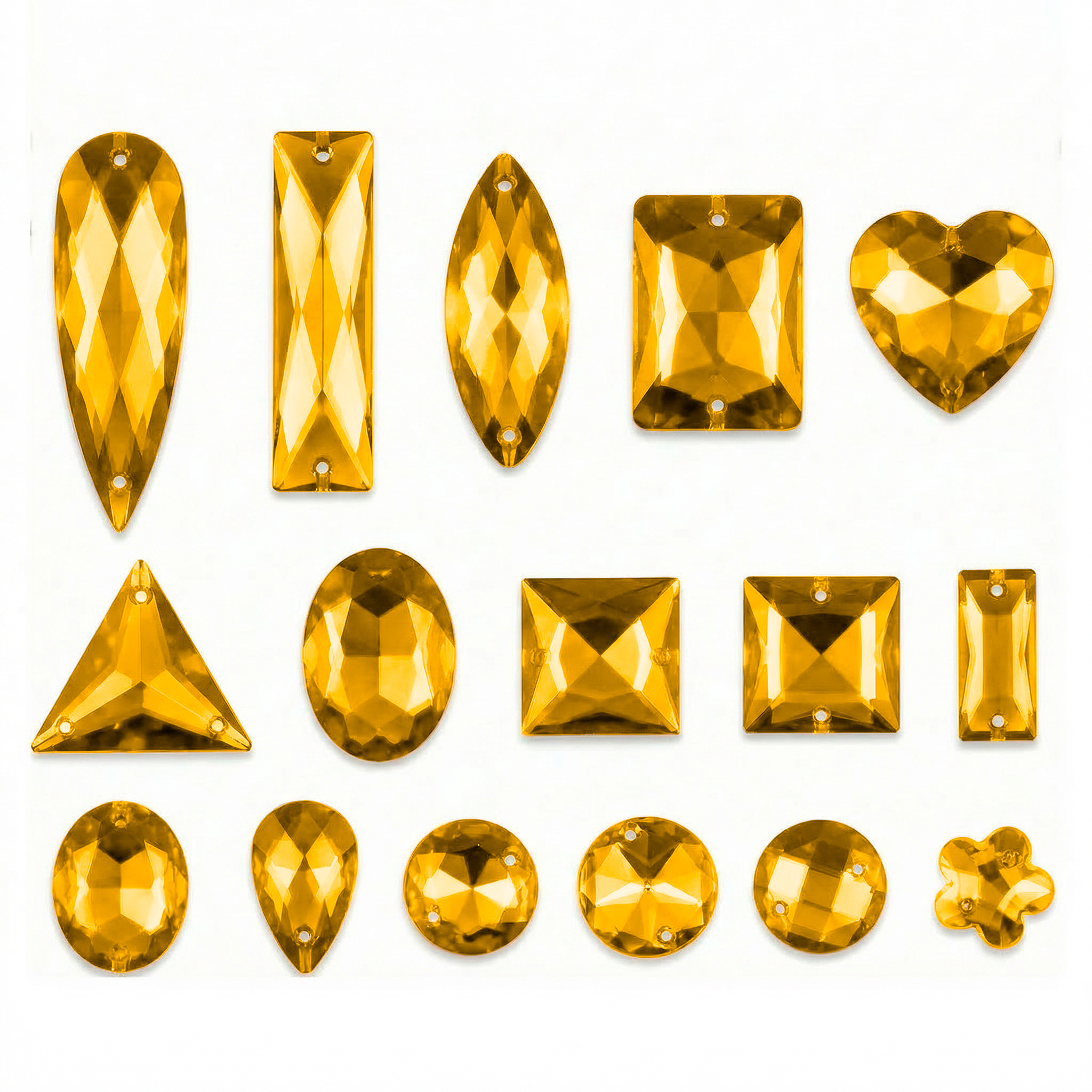 Добавьте в декор тепло солнечного золота с набором пришивных страз “Topaz”! Благородный янтарно-золотой оттенок этих кристаллов напоминает редкий драгоценный топаз — сияющий, яркий и притягательный. Многогранная огранка усиливает игру света и делает каждую стразу заметной деталью, а разнообразие форм (круг, овал, капля, маркиза, прямоугольник, квадрат и другие) позволит воплотить самые смелые творческие задумки.