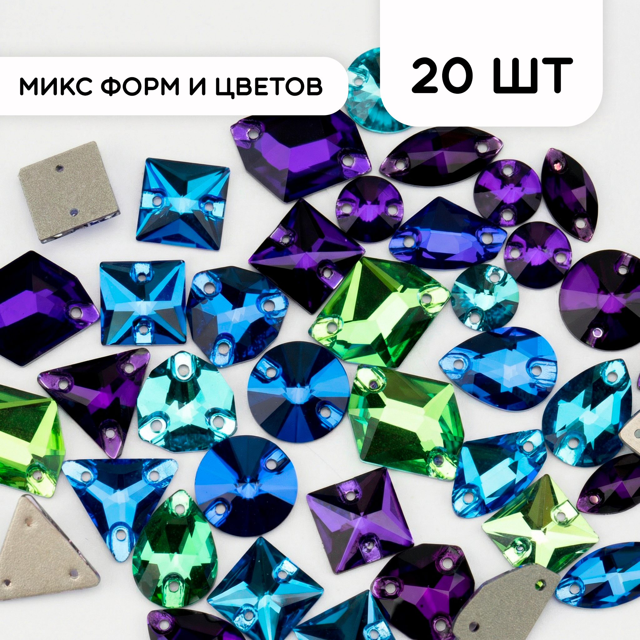Набор пришивных страз из стекла “Синий, фиолетовый, бирюзовый, зелёный” — эффектная подборка глубоких, насыщенных, холодных оттенков для самых стильных и выразительных решений! Многообразие форм (квадрат, круг, треугольник, капля, овал и “маркиз”) открывает простор для творчества, а идеальная гранёная огранка на стекле гарантирует изумительное сияние и объём.