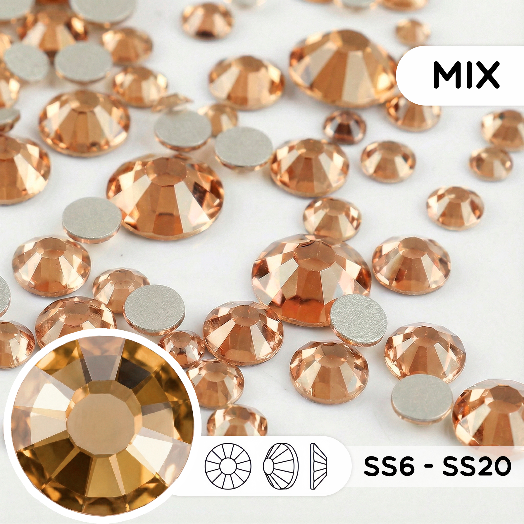 Набор стеклянных страз (mix размеров) — Golden Shadow