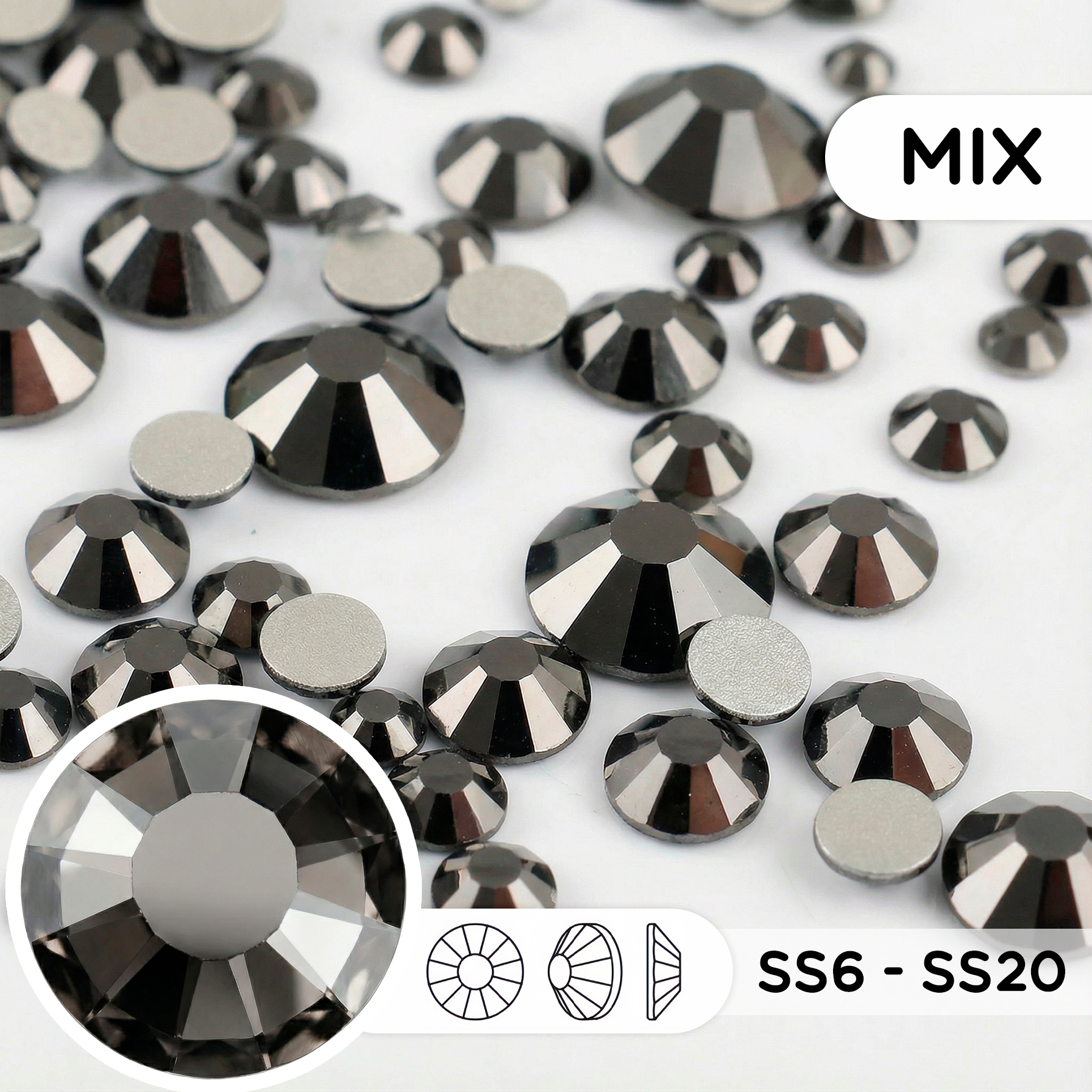 Набор стеклянных страз (mix размеров) — Hematite