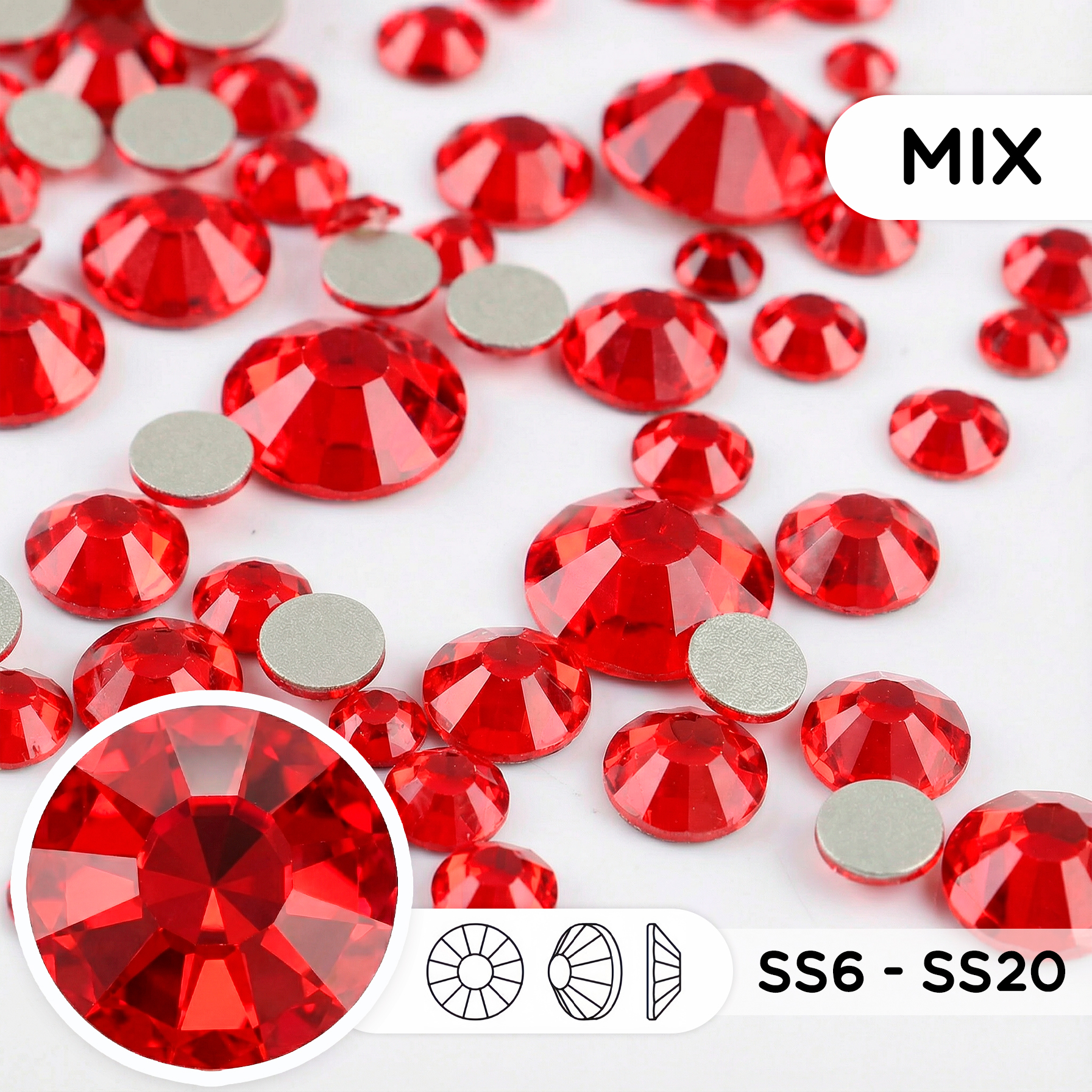 В набор входят стразы разных диаметров (SS6 – SS20, 1,9 - 4,8 мм), что позволяет создавать плавные переходы, художественные композиции, объемные узоры или лаконичные акценты. Такой микс удобен для творчества любого уровня — от новичков до профессионалов.