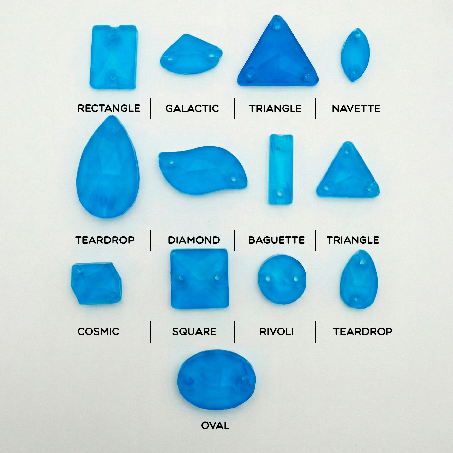 Набор страз Neon Blue (микс форм) — это коллекция невероятно ярких неоновых синих пришивных страз различных форм и размеров для эффектного и стильного декора! В одном наборе собраны стразы как классических круглых, так и популярных фигурных форм: капля, овал, риволи, ромб, прямоугольник, космик и другие. Такой микс позволяет легко создавать сложные узоры, уникальные композиции и индивидуальные акценты.
