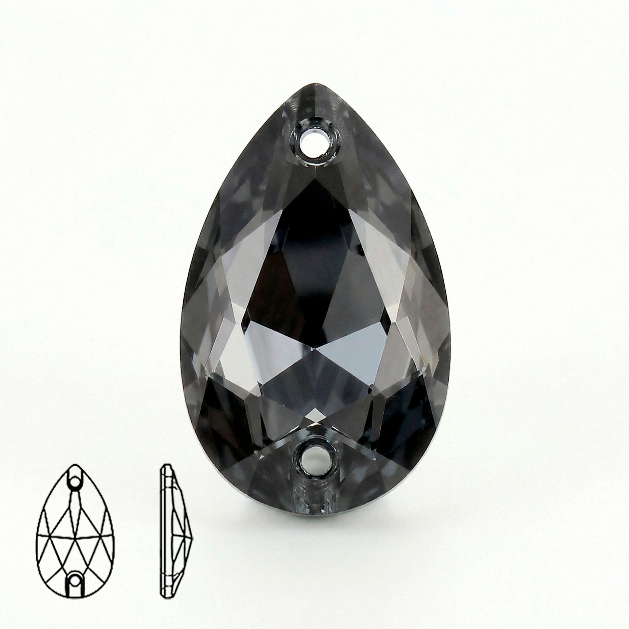 Пришивные стеклянные стразы (Black Diamond / Чёрный алмаз, форма “капля” / Teardrop)
