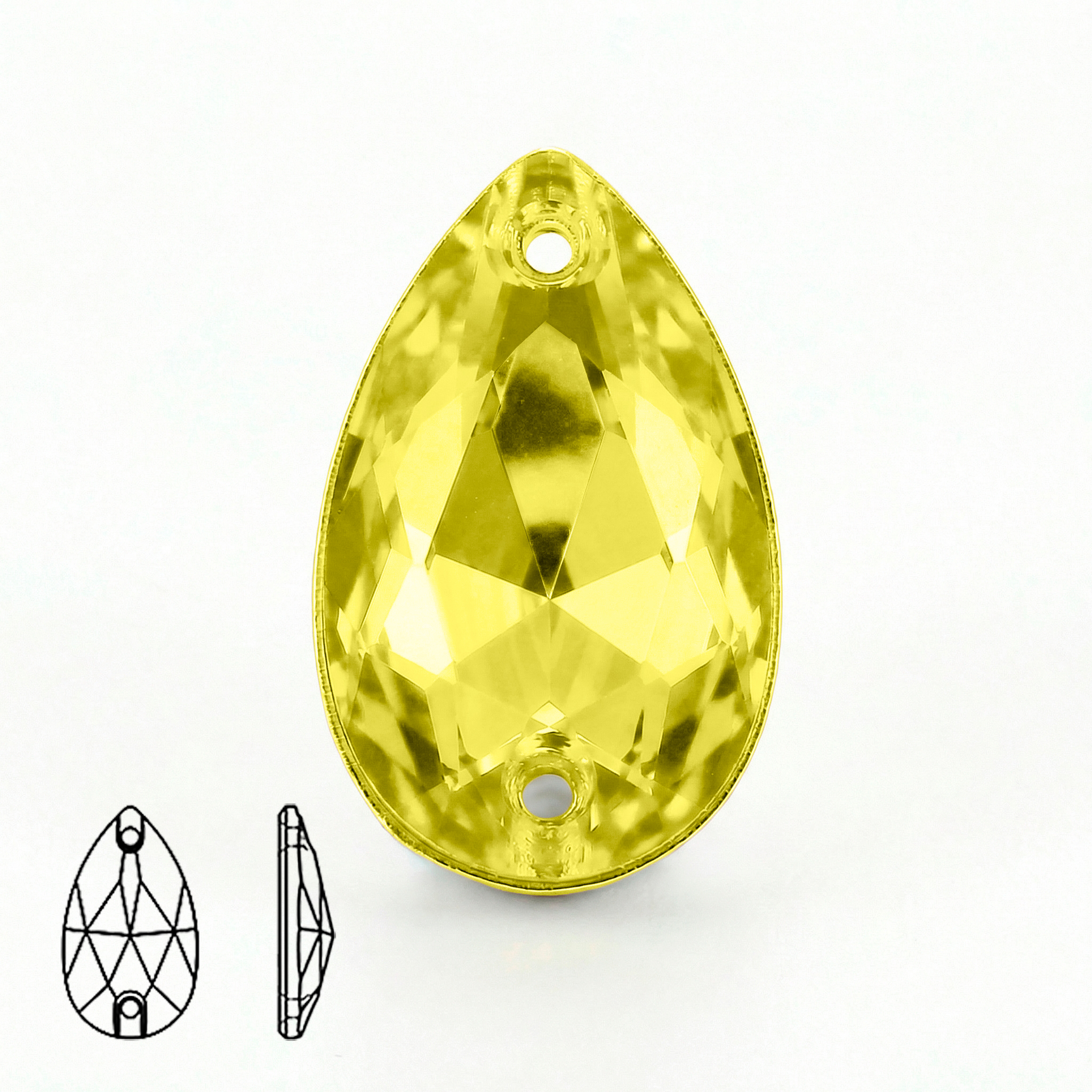 Пришивные стеклянные стразы (Citrine / Цитрин, форма “капля” / Teardrop)