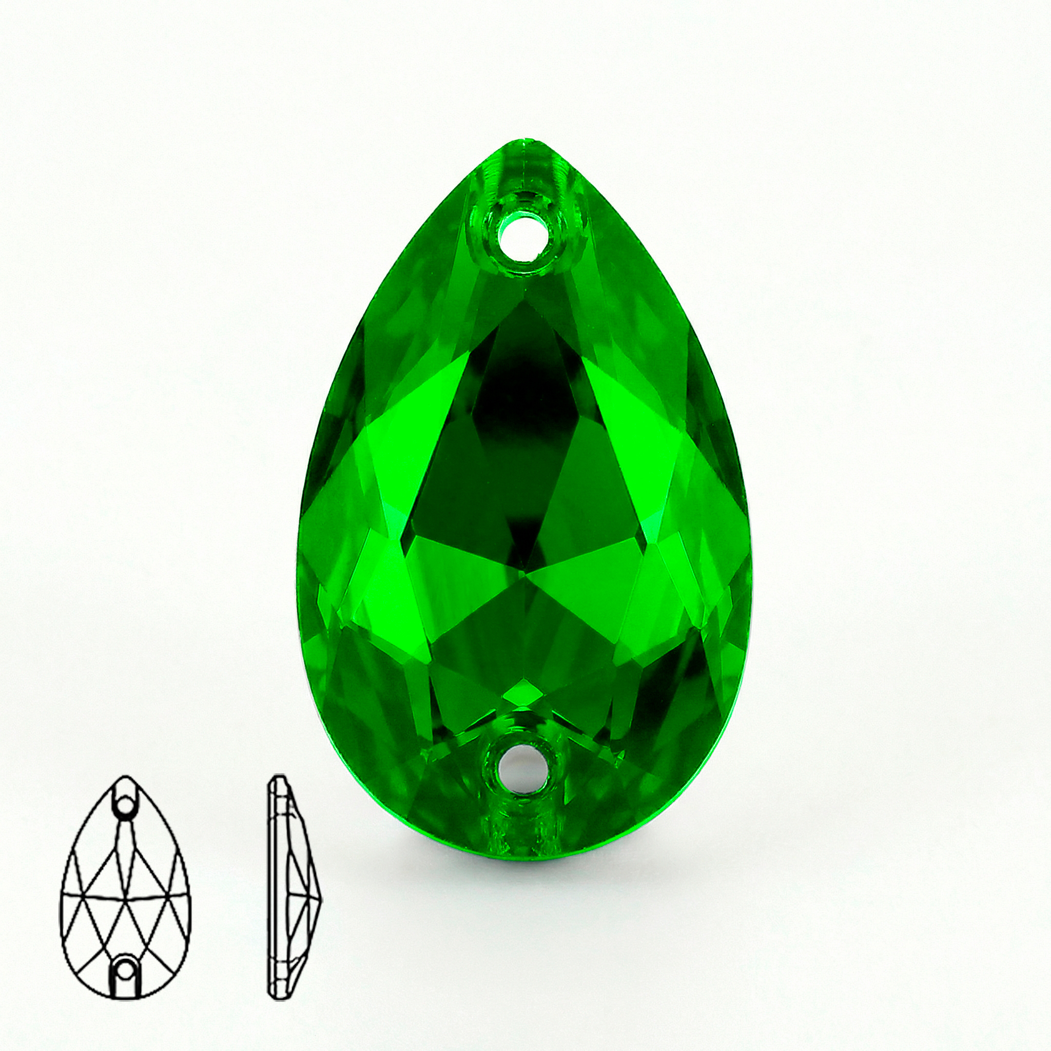 Пришивные стеклянные стразы (Emerald / Изумрудный, форма “капля” / Teardrop)