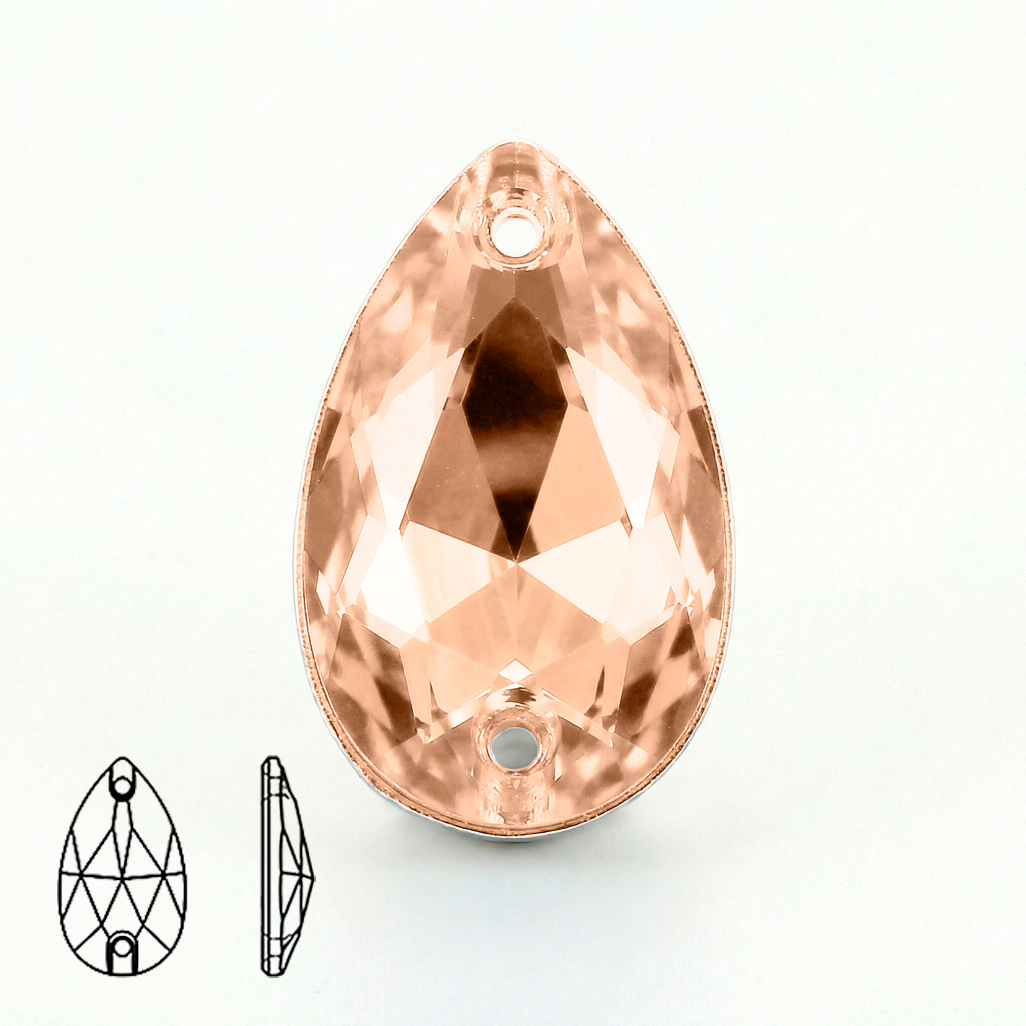 Пришивные стеклянные стразы (Gold Champagne / Голд Шампань, форма “капля” / Teardrop)