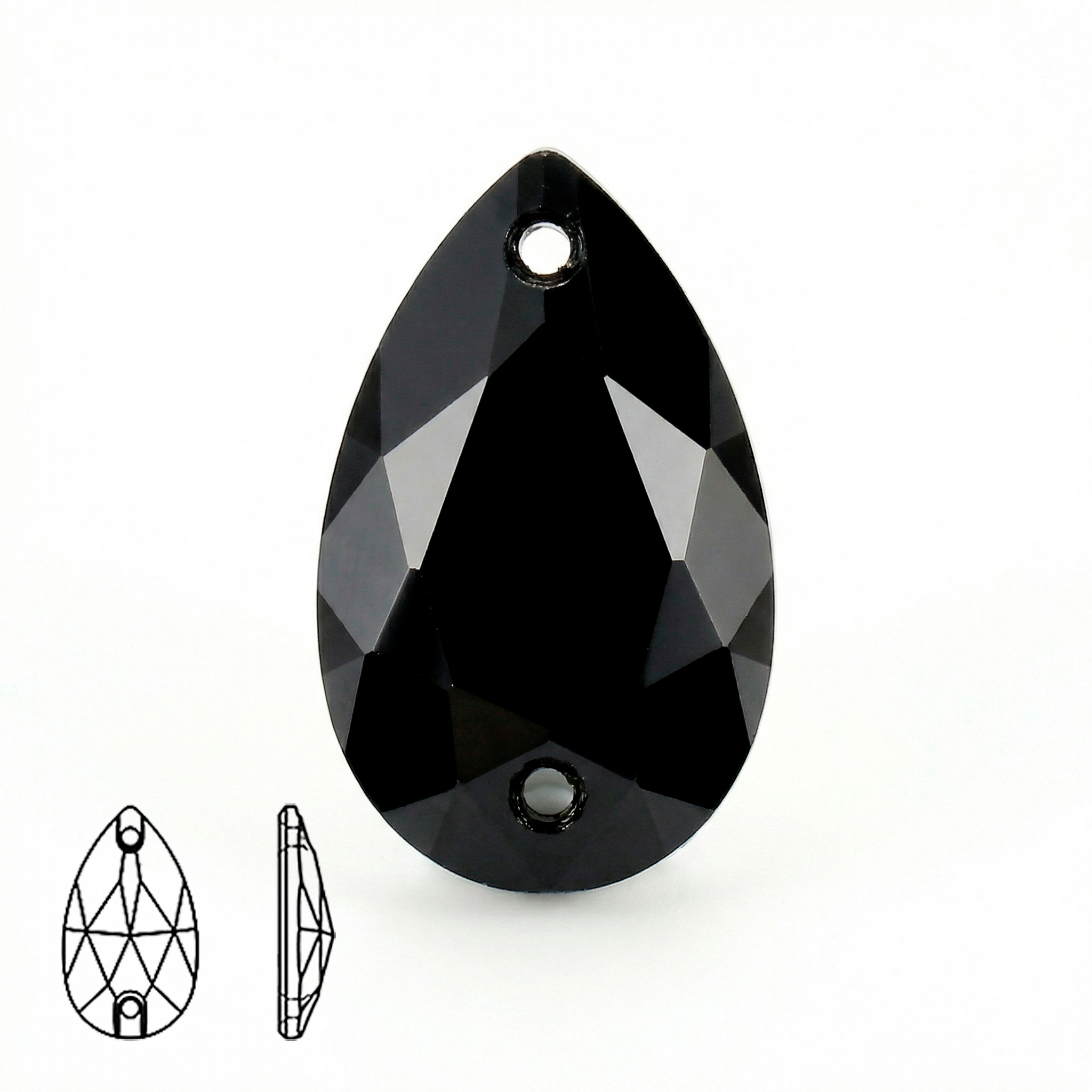 Пришивные стеклянные стразы (Jet / Чёрный, форма “капля” / Teardrop)