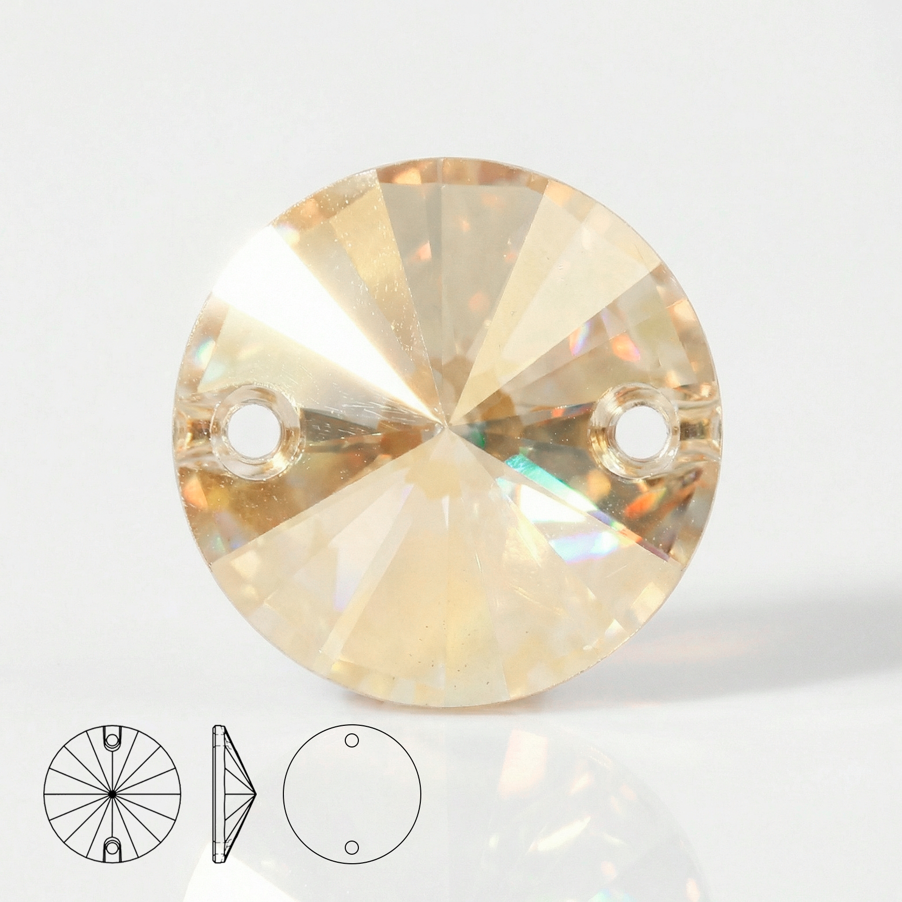В этом наборе представлены пришивные стеклянные стразы высокого качества — отличный выбор для декорирования одежды, аксессуаров, обуви, сумок, сценических и праздничных изделий, а также для hand made и творческих проектов. Классическая круглая форма с двумя отверстиями обеспечивает легкость и надежность пришивания, а изысканная многогранная огранка делает стразы ярко сияющими при любом освещении.