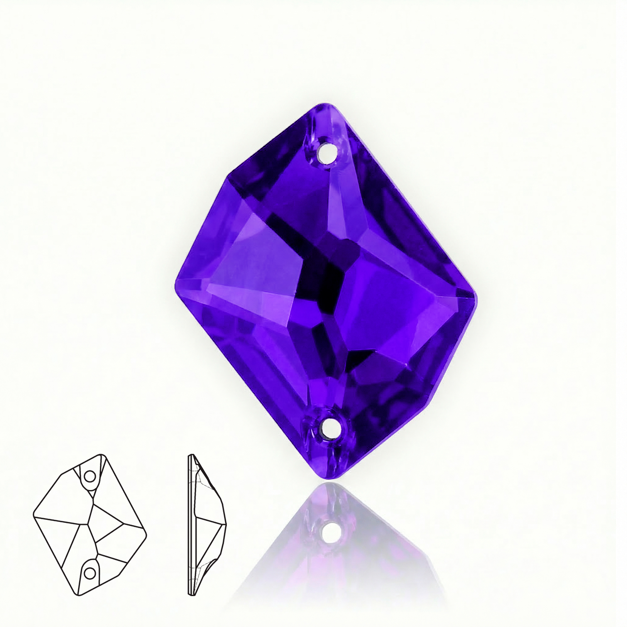 - Два аккуратных отверстия позволяю легко и надёжно пришить стразу к одежде, аксессуарам, головным уборам, сценическим и танцевальным костюмам.