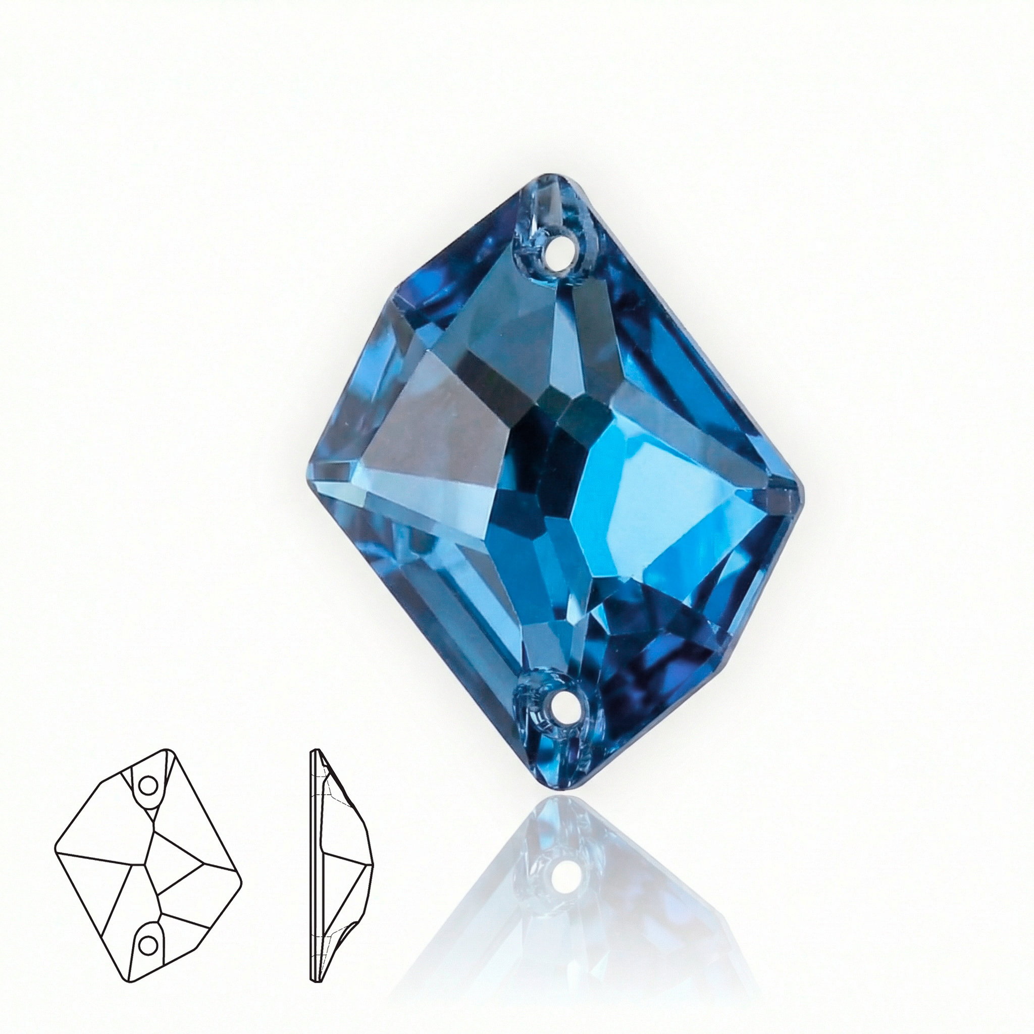 Пришивные стразы Cosmic Lake Blue — фигурная форма Cosmic с двумя отверстиями для надёжного пришива. Глубокий прозрачный цвет lake blue напоминает чистую воду горного озера — это насыщенный и свежий голубой оттенок с лёгким аквамариновым подтоном. Страз словно светится изнутри благодаря многогранной огранке, которая ярко отражает и преломляет свет. Металлизированная подложка усиливает блеск и подчёркивает чистоту и глубину цвета.