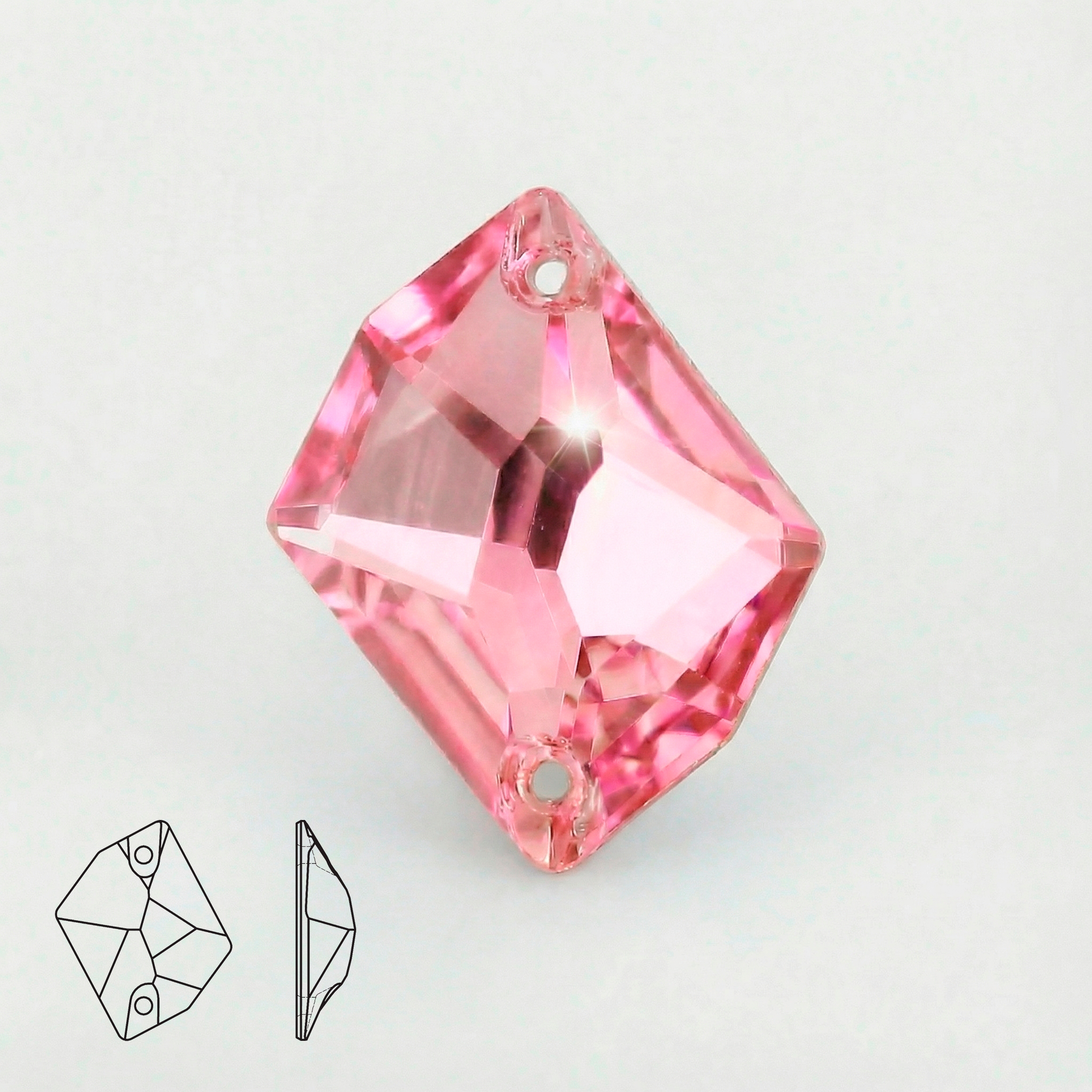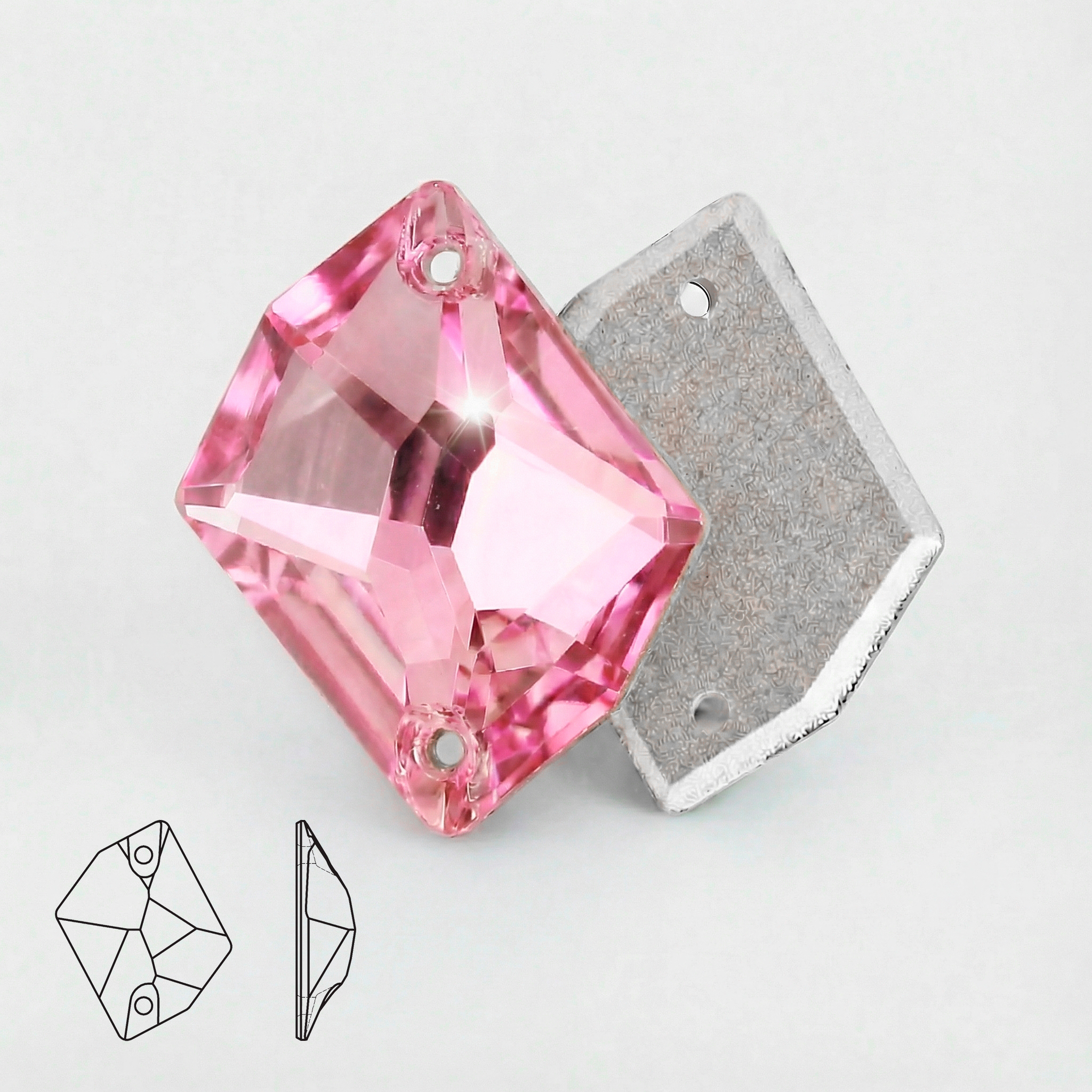 Пришивные стразы Cosmic Light Rose — фигурная форма Cosmic с двумя отверстиями для надёжного и аккуратного пришива. Светлый розовый оттенок (Light Rose) утончённо и нежно сияет на свету, создавая романтичное настроение и воздушный акцент в любой композиции. Многогранная огранка подчёркивает переливы и глубину цвета, а металлизированная подложка усиливает отражение света, делая кристалл максимально нарядным и заметным.
