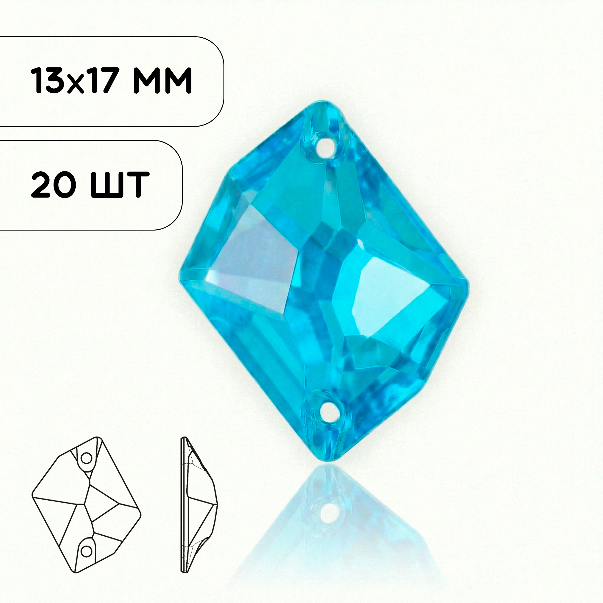 Пришивные стразы Cosmic Neon Deep Blue AB Mocha — фигурная форма Cosmic с двумя отверстиями для надёжного пришива. Глубокий неоново-синий оттенок (Neon Deep Blue) с покрытием Aurora Borealis (AB) и легким мокко-отливом создаёт впечатляющий эффект: яркий, насыщенный голубой цвет с многоцветными радужными переливами и лёгким благородным сиянием. Такая комбинация позволяет кристаллу красиво играть светом, создавая динамичные, мерцающие отблески при любом движении. Металлизированная подложка усиливает глубину цвета и подчёркивает эффект сияния.