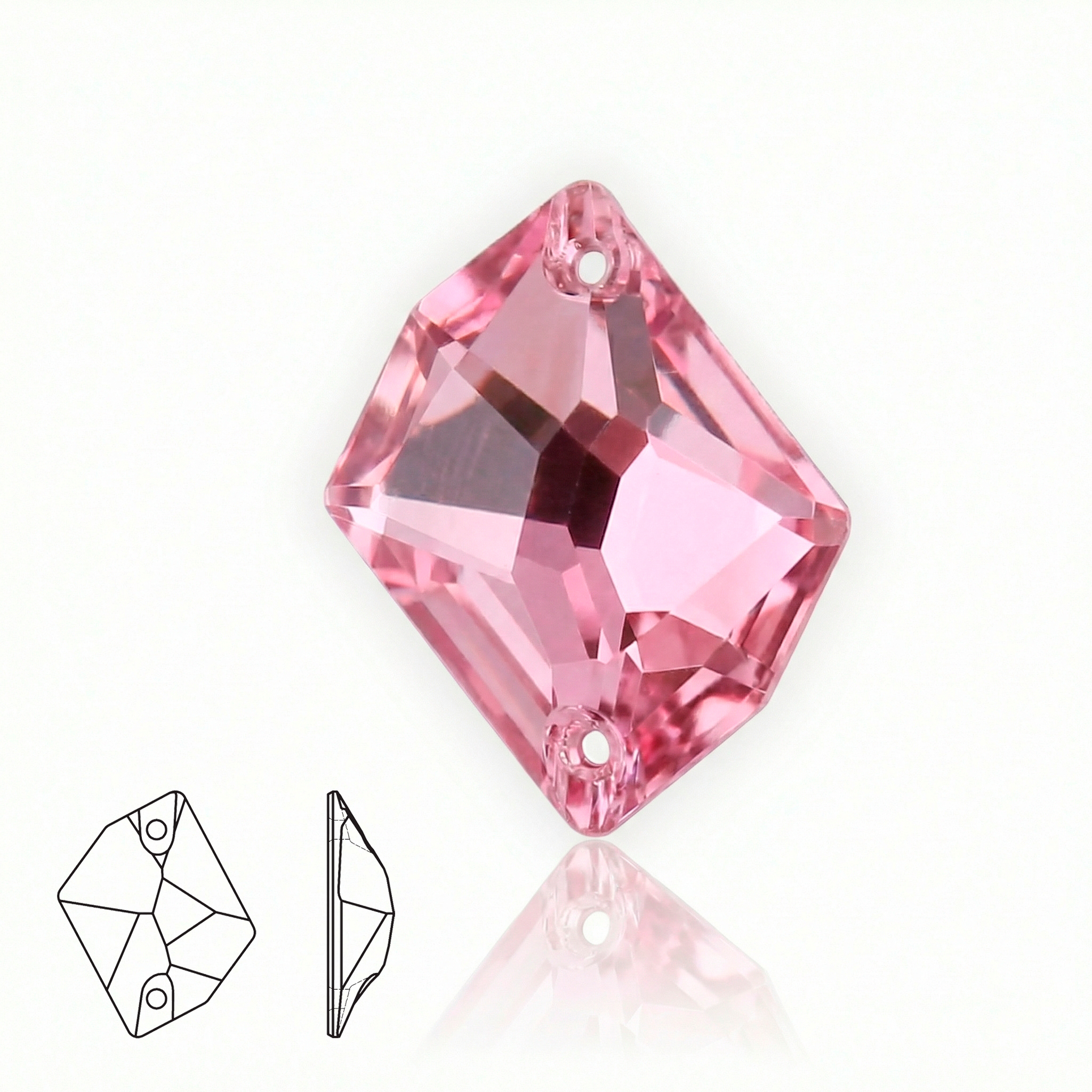 Пришивные стразы Cosmic Pink — фигурная форма Cosmic с двумя отверстиями для надёжного пришива. Прозрачная основа в классическом розовом оттенке (Pink) создаёт нежный, элегантный и женственный акцент. Цвет напоминает лепестки свежей розы: деликатный, слегка пастельный, но при этом достаточно насыщенный, чтобы выделяться на изделии. Многогранная огранка помогает кристаллу красиво ловить свет и мерцать мягкими розовыми бликами, а металлизированная подложка подчёркивает чистоту цвета и добавляет дополнительный блеск.