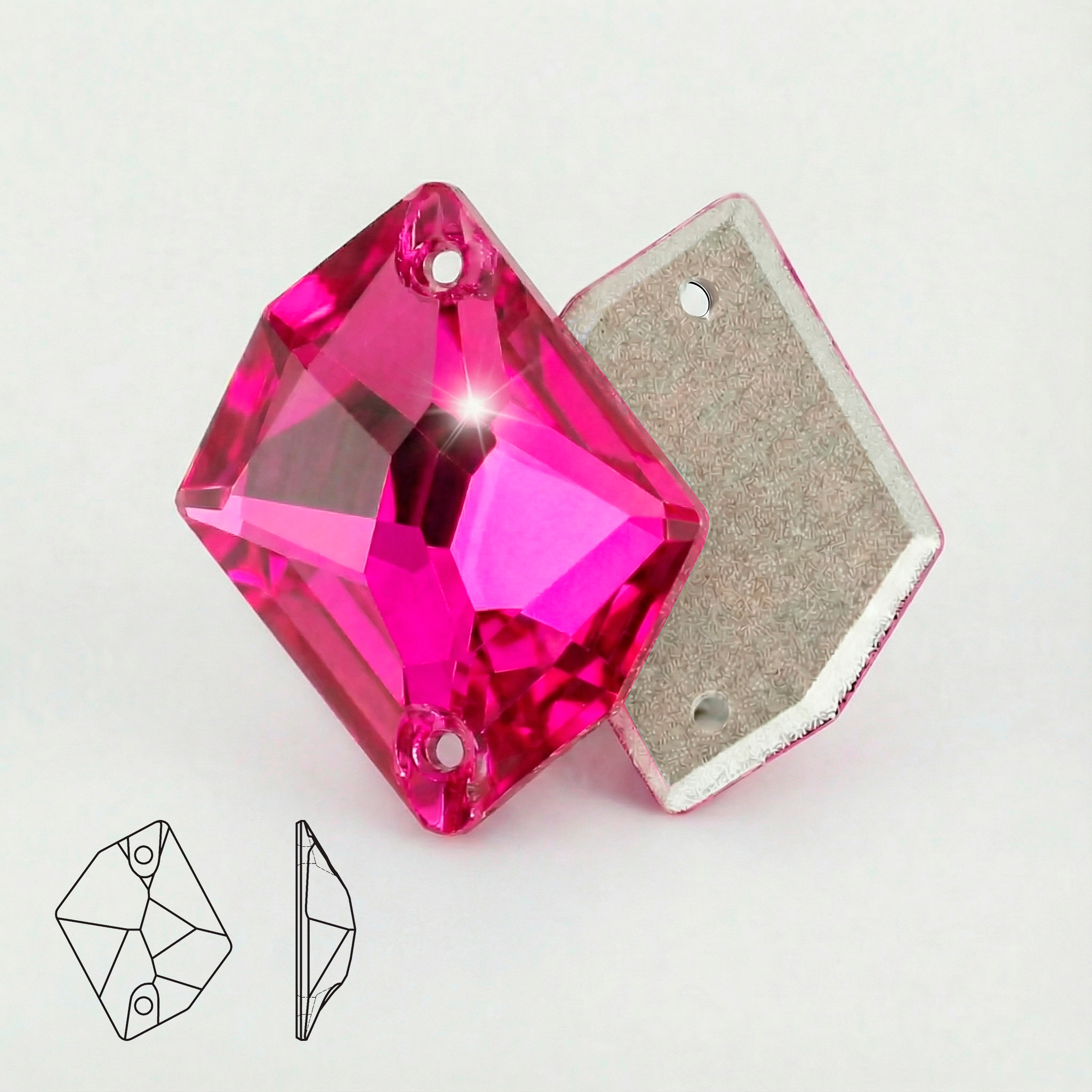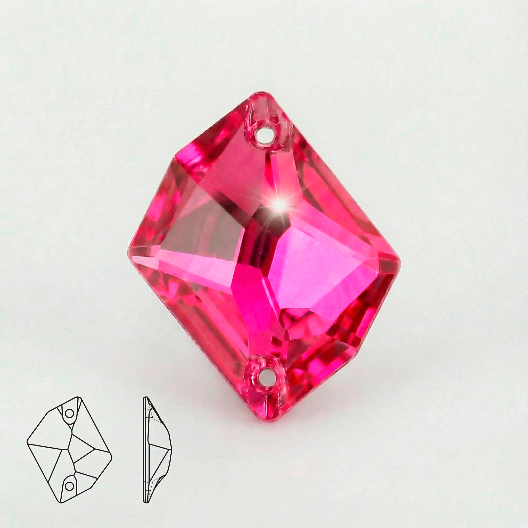 Пришивные стразы Cosmic Rose — фигурная форма Cosmic с двумя отверстиями для надёжного пришива. Яркий и насыщенный розово-красный оттенок завораживает своими малиновыми переливами, создавая эффект живого цветочного сияния. Многогранная огранка активно улавливает свет, а металлизированная подложка усиливает блеск и подчёркивает глубину цвета, делая камень особенно выразительным.