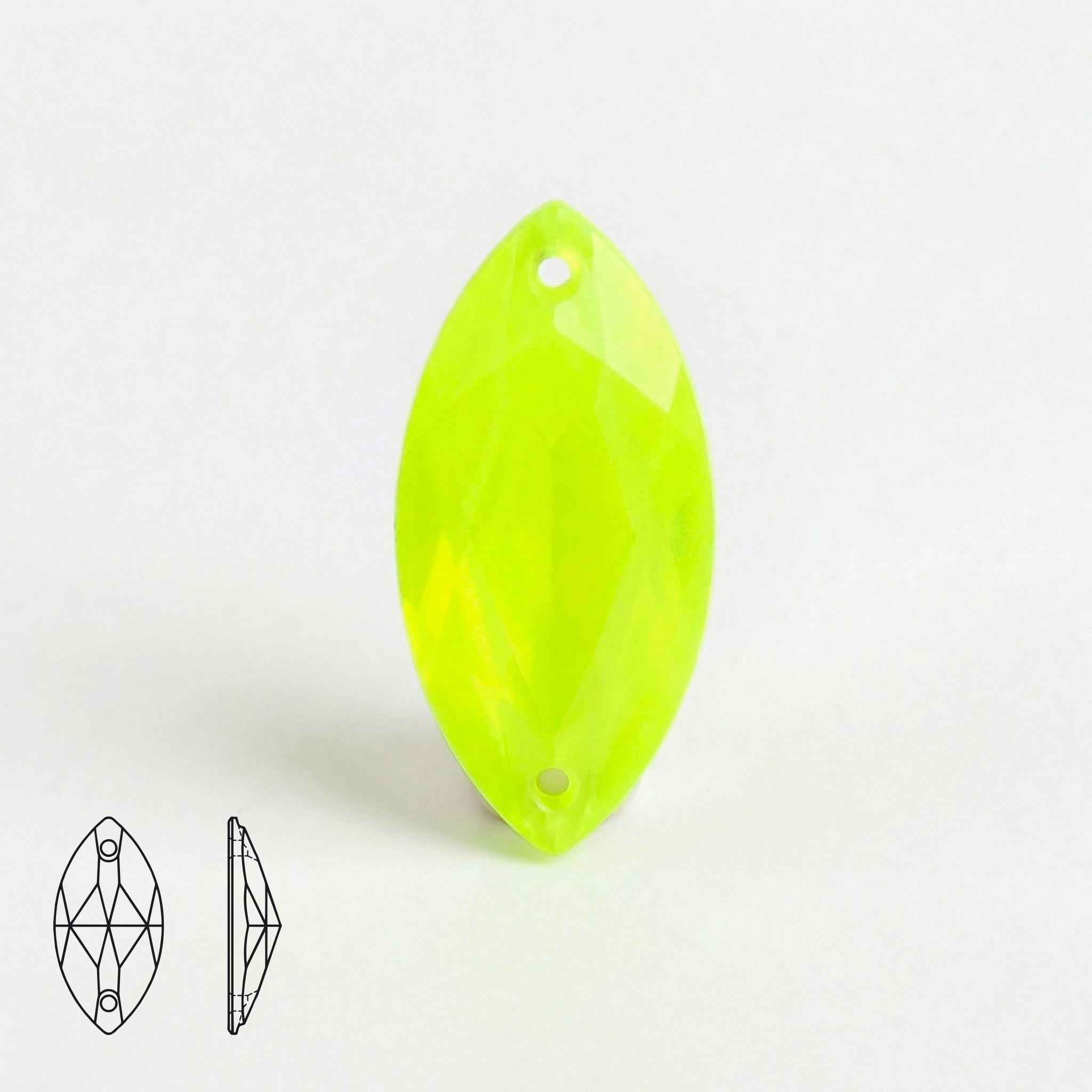 Стеклянные пришивные стразы Navette, цвет Neon Yellow
