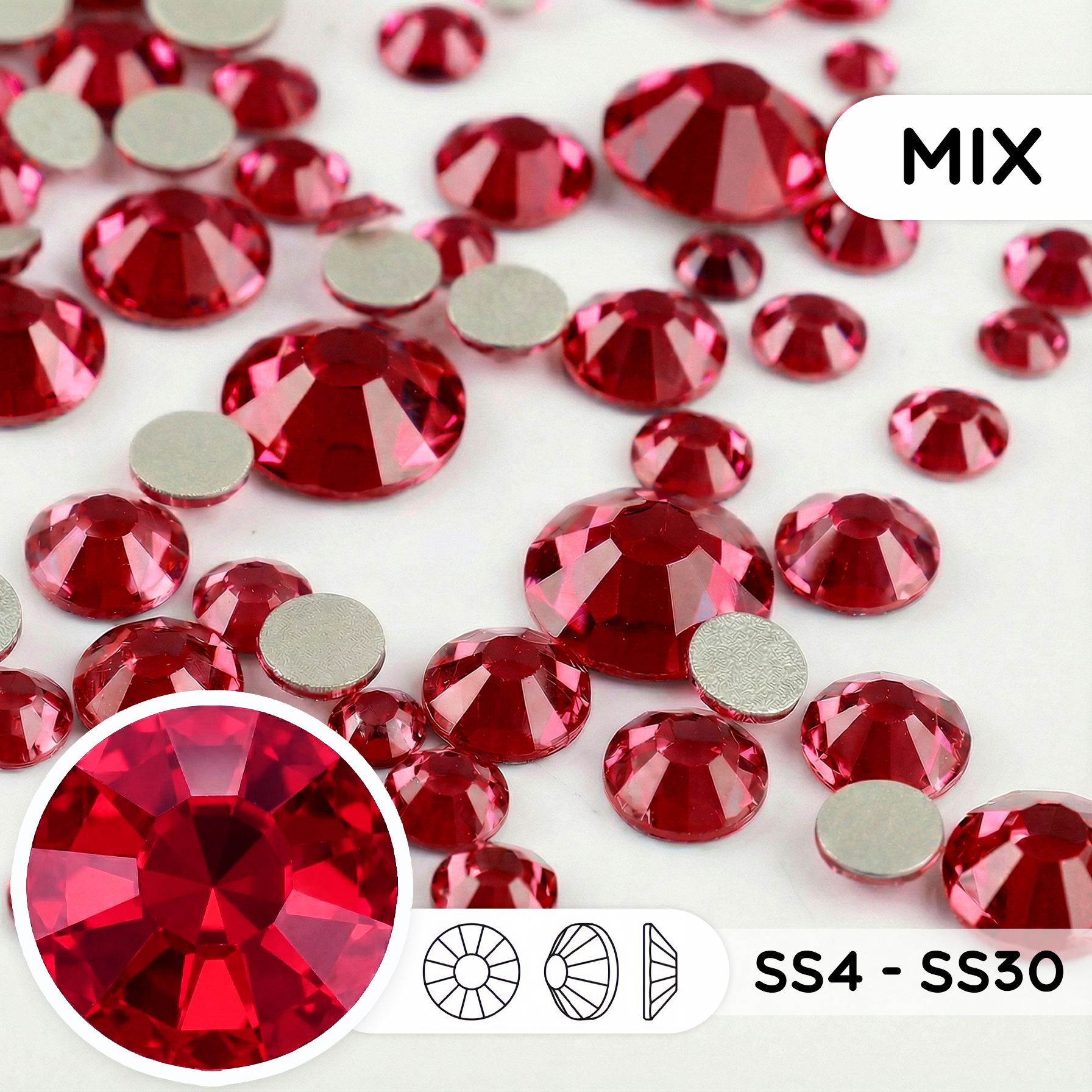 Стеклянные стразы холодной фиксации “Dark Siam” — микс размеров SS4–SS30
