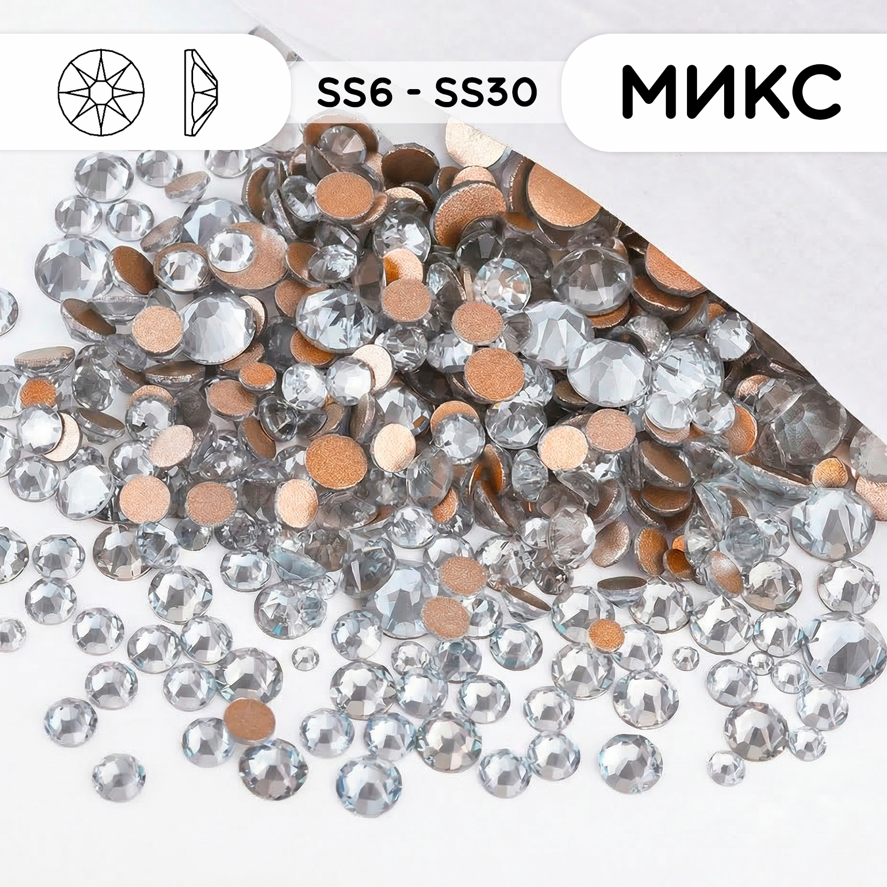 Стеклянные стразы холодной фиксации “Кристалл” (микс размеров SS6–SS30)