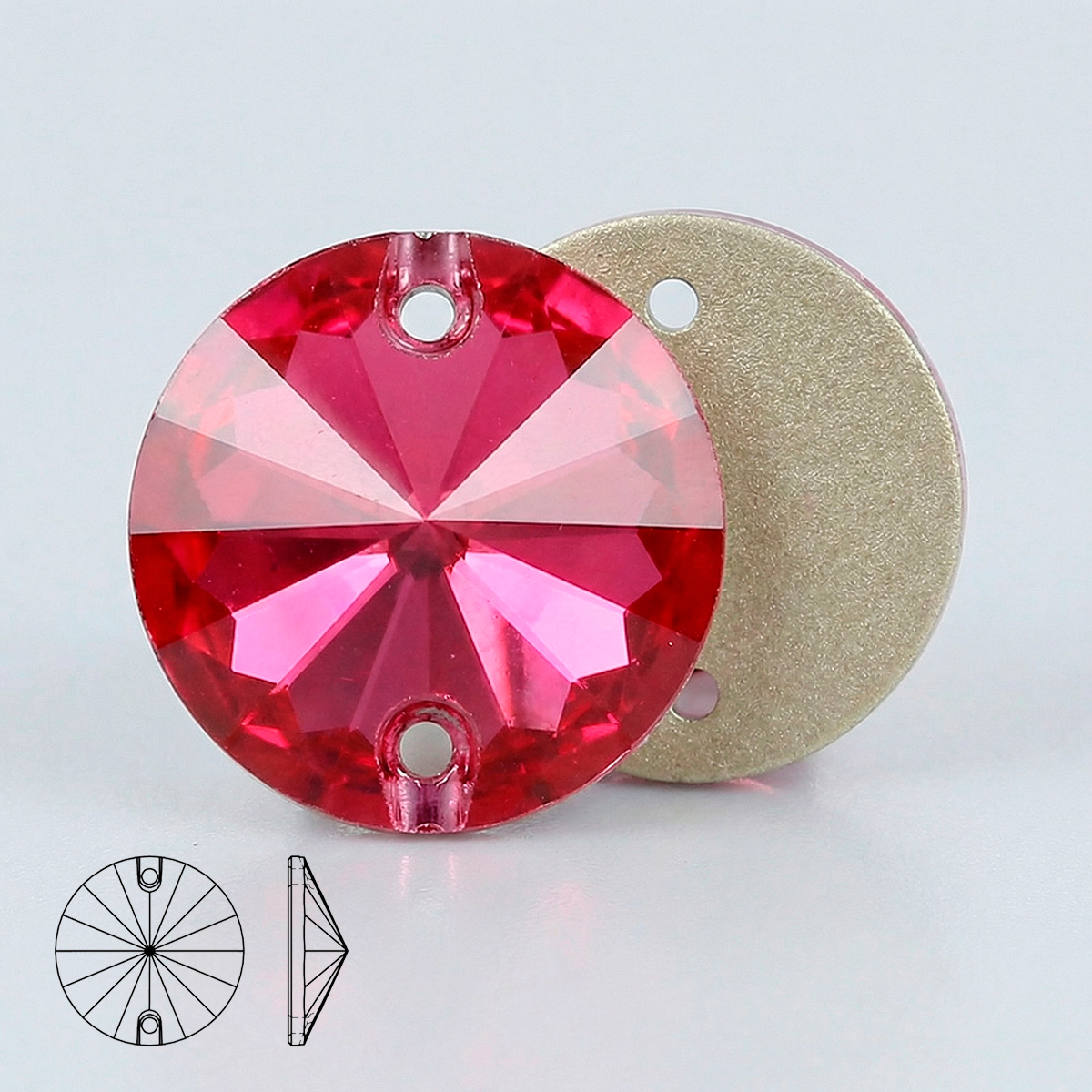 Пришивные стразы Rivoli Red Rose — круглая гранёная форма Rivoli с двумя отверстиями для надёжного пришива. Оттенок Red Rose — насыщенный розово‑малиновый с тёплым красным подтоном: яркий, «конфетный», но при этом глубокий, без AB‑перелива. Многогранная огранка даёт сочные розовые вспышки и активную игру света, а металлизированная подложка усиливает сияние и делает цвет визуально более плотным.
